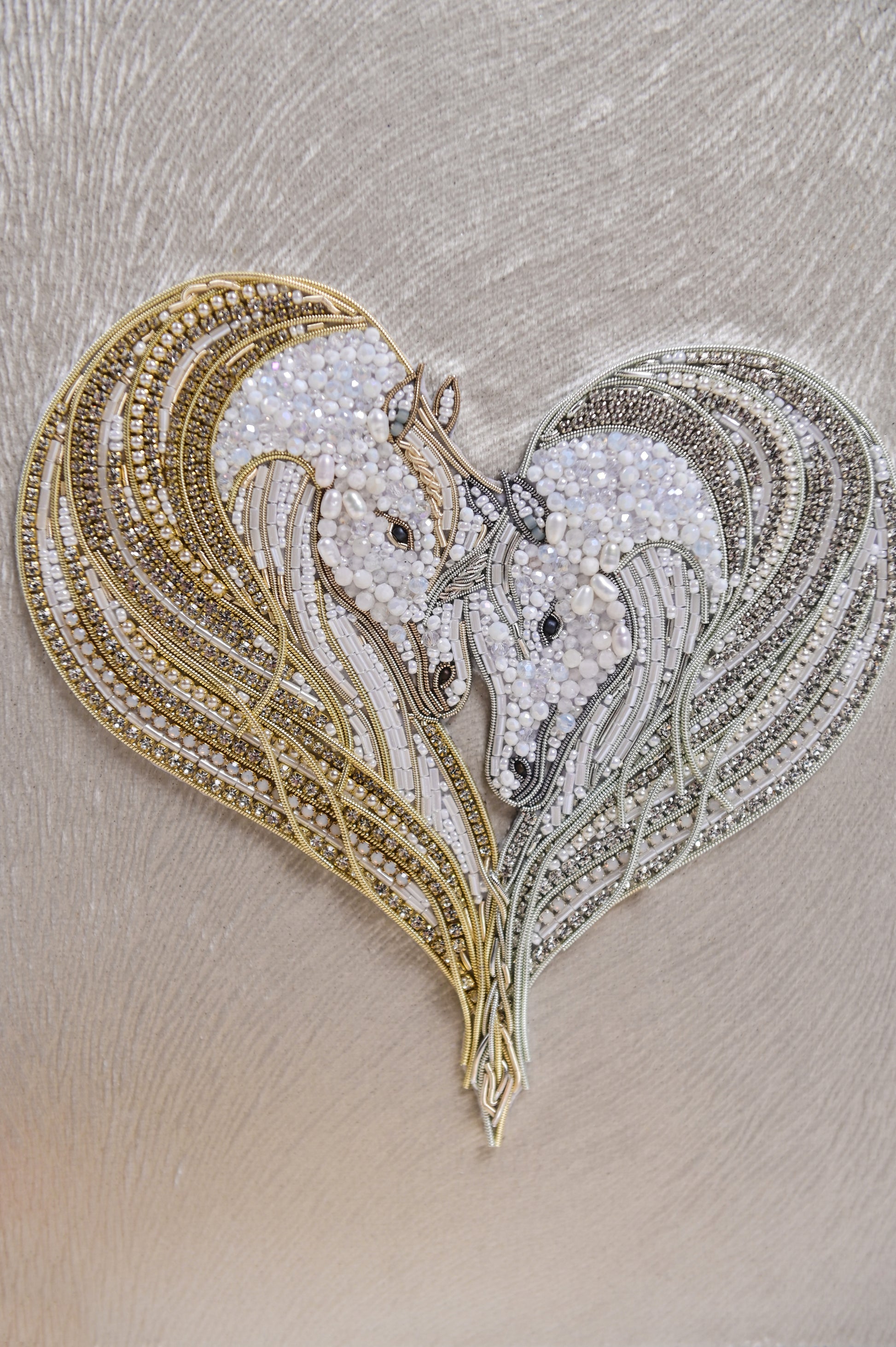Два коні у філігранній ручній вишивці символізують гармонію, нерозривний зв’язок та силу кохання.