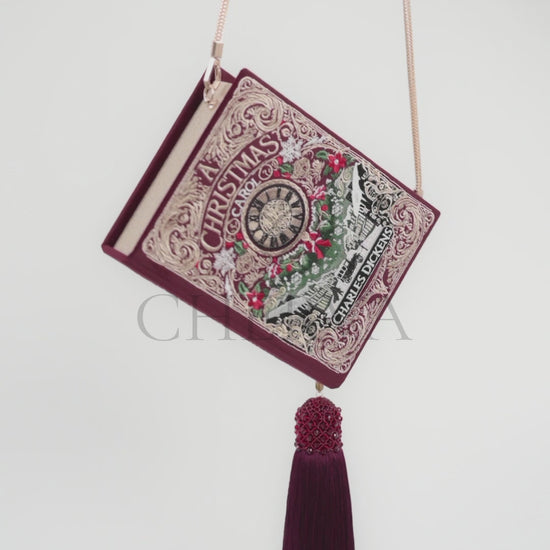 Вишитий клатч «Різдвяна пісня» створений за мотивами справжньої обкладинки безсмертної казки Чарльза Діккенса. Це нагадування, що потрібно дарувати добро іншим, і воно обов’язково до вас повернеться. Яскрава оксамитова обкладинка червоного кольору з золотою вишивкою створює неповторну атмосферу свята.