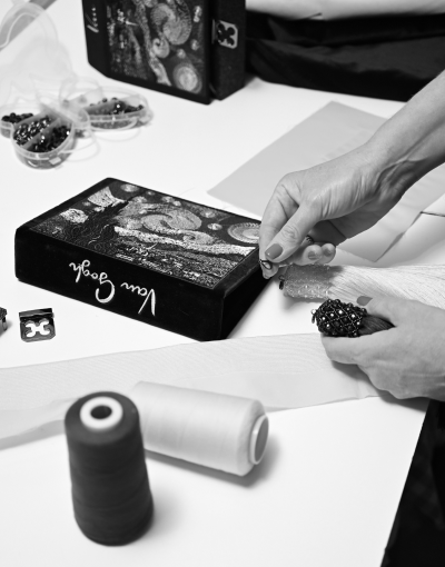 Чарівність CHERVA полягає у втіленні найсміливіших та найнеймовірніших ідей своїх клієнтів, використовуючи як машинну, так і ручну вишивку для персоналізації клатчів та створення справді унікальних розкішних сумок. Серед відмінних елементів - вишиті "сторінки" CHERVA, що покривають каркас 100 000 стібків за 6 годин, роблячи клатч схожим на справжню книгу, а шовкова китиця ручної роботи на ювелірній застібці виконує функцію закладки.